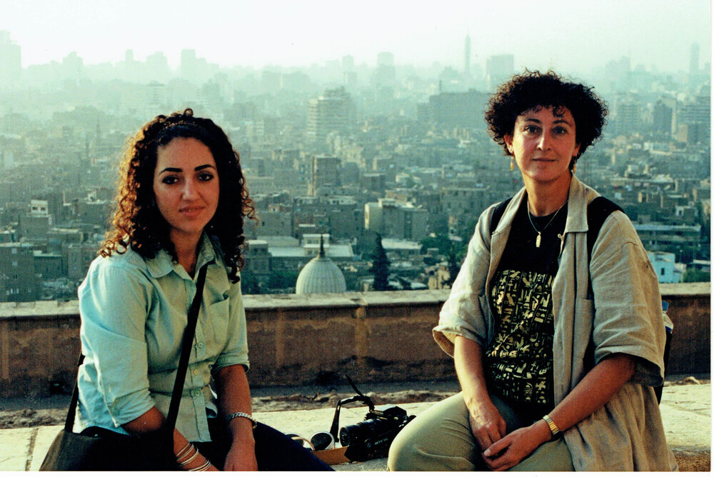 Alice was a frequent traveler before she became disabled. Today, her mobility is limited by her wheelchair, and pain keeps her from driving long distances or taking long airplane flights. In this picture, she is traveling with her niece in Cairo in November 2000.