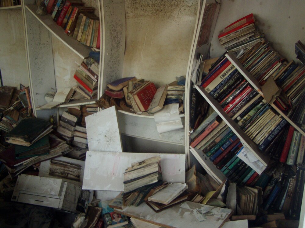 Alice has been a Great Reader all her life, and always has her nose stuck in a book. One of the saddest days of her life was when she lost all her books in Hurricane Katrina. This picture was taken in Alice’s house in Louisiana just one week after the hurricane.
